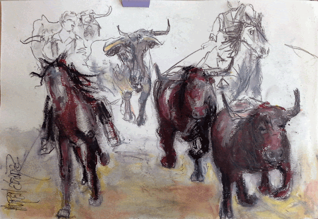 Todos estos bocetos y otros muchos que hago,  me resultan de gran utilidad  a lo largo de mi trayectoria para realizar mis  pinturas. Podéis encontrarme cada domingo por la mañana en el viejo Madrid de Los Austrias. Plaza Conde de Barajas.
